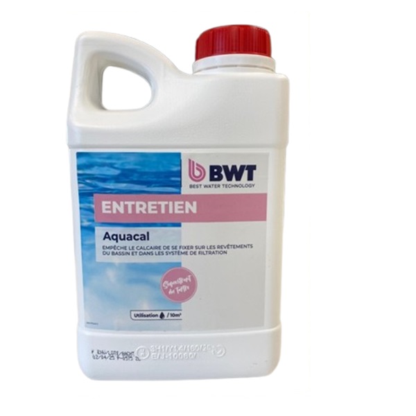 L’anti calcaire Aquacal de chez BWT neutralise la formation de calcaire de l’eau de piscine sur toute l’installation y compris la ligne d’eau.