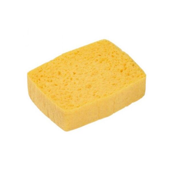 Eponge végétale Spontex sèche, bordée d’une croûte améliorant sa résistance à la torsion.