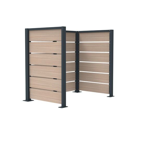 Découvrez notre gamme de Cache Conteneur A fixer au sol, fabriquée par la société Française ROSSIGNOL, modèle Maestro Extrême, idéal pour dissimuler les collecteurs de déchets ou poubelle dans le paysage urbain. Il se compose de 3 modules ajourés mais représentent 4 panneaux, de couleur chêne clair, avec poteau en acier traité anti-corrosion et poudré anti-UV.