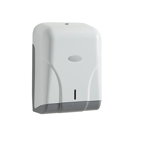 Le DISTRIBUTEUR ESSUIE MAINS FEUILLE A FEUILLE reçoit les essuie-mains pliés Z, M et V. Ce distributeur est en ABS de haute qualité et résistance. Présence d’un repère de consommation en façade.