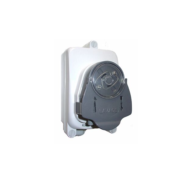 Une fois installé, il faut procéder à l’amorçage du produit. Pour cela, lancer un programme de lavage et dès que le rotor du doseur se met en mouvement, il faut appuyer sur le bouton noir placé en dessous. Cela permet de prolonger la rotation du rotor et ainsi accélère la remonté du produit dans le tuyau. Cette opération est à effectuer autant de fois que nécessaire pour le produit lavage.