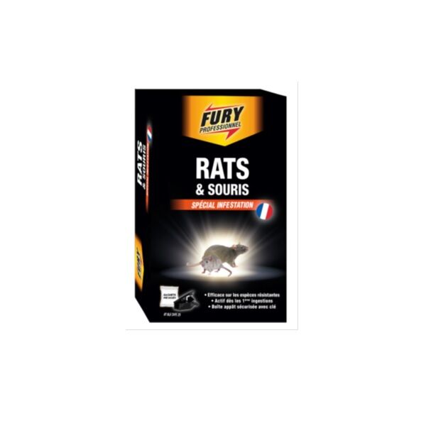 Le produit Fury Rats et souris, est spécialement conçu pour éliminer les rats et les espèces les plus résistantes de rats, souris et mulots.