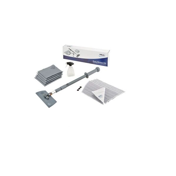 KIT Fenêtre Easy Shine VIKAN comprend un manche télescopique en 3 parties 50-90-120 cm, un support, 5 franges et 5 lavettes, ainsi qu’un flacon pulvérisateur d’eau. Il s’agit d’un produit de chez VIKAN.