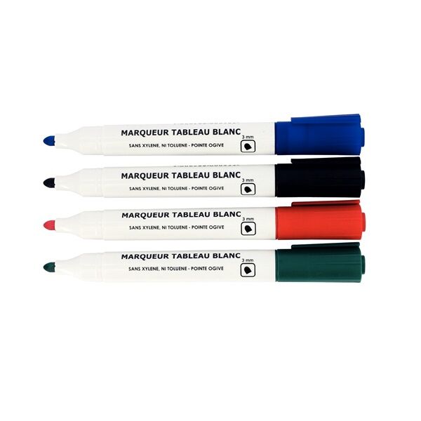 Ce lot de 4 marqueurs tableau blanc est spécialement adapté pour une utilisation sur tableau blanc.