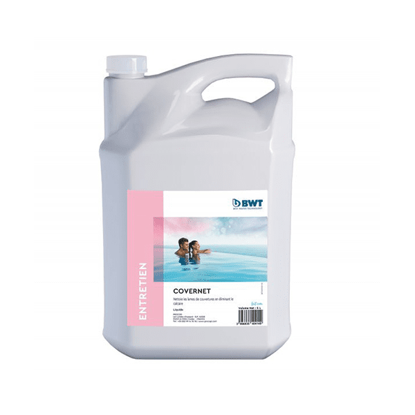 Détergent liquide puissant utilisé pour nettoyer et dégraisser les couvertures d’hiver (enduites PVC) ainsi que les lames des volets automatiques. Dissout et élimine les salissures. Son haut pouvoir antifongique protège les éléments traités contre les moisissures. Un litre de Covernet BWT permet de nettoyer de 10 à 20 m2.