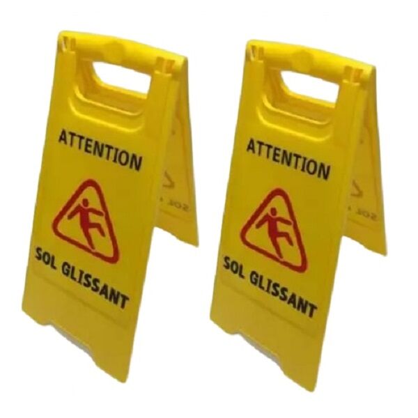 Panneau de signalisation « sol glissant » en plastique pour la sécurité et protection de votre chantier, prévenir un sol glissant, une zone dangereuse.