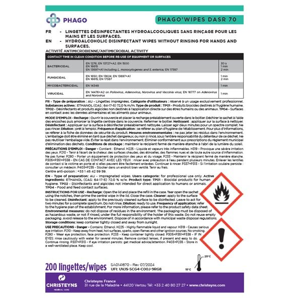 PHAGO WIPES DASR: Bactéricide, Fongicide, Virucide EN14476 active sur Coronavirus