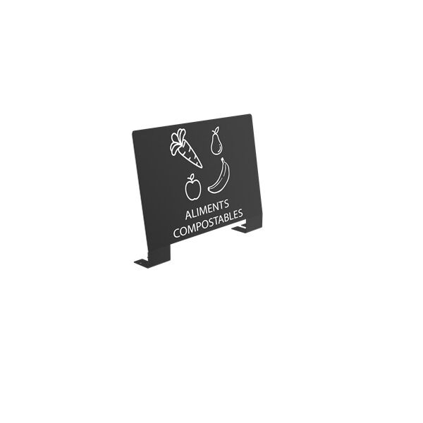 Cette plaque signalétique Alitri Aliments compostables, fabriquée par la société Rossignol, s’adapte sur les bornes de tri sélectif de la gamme ALITRI.