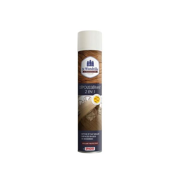 L’aérosol ST WANDRILLE DEPOUSSIERANT 2 EN 1 nettoie et fait briller les meubles en bois et les surfaces modernes.